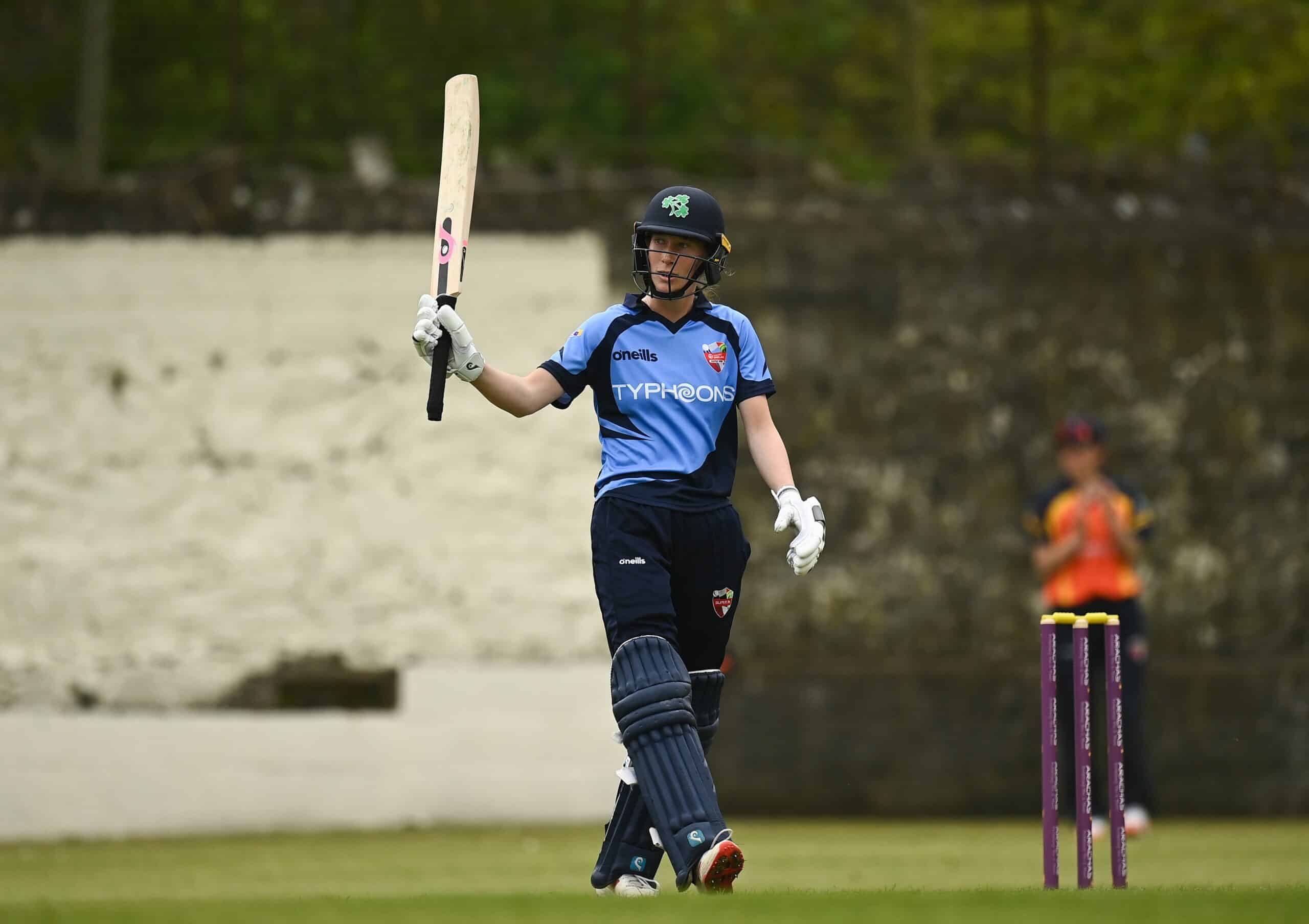 DUBLIN – A maiden century by Typhoons stand-in captain Orla Prendergast led the Typhoons to victory by 33 runs in the Arachas Super 50 Cup…