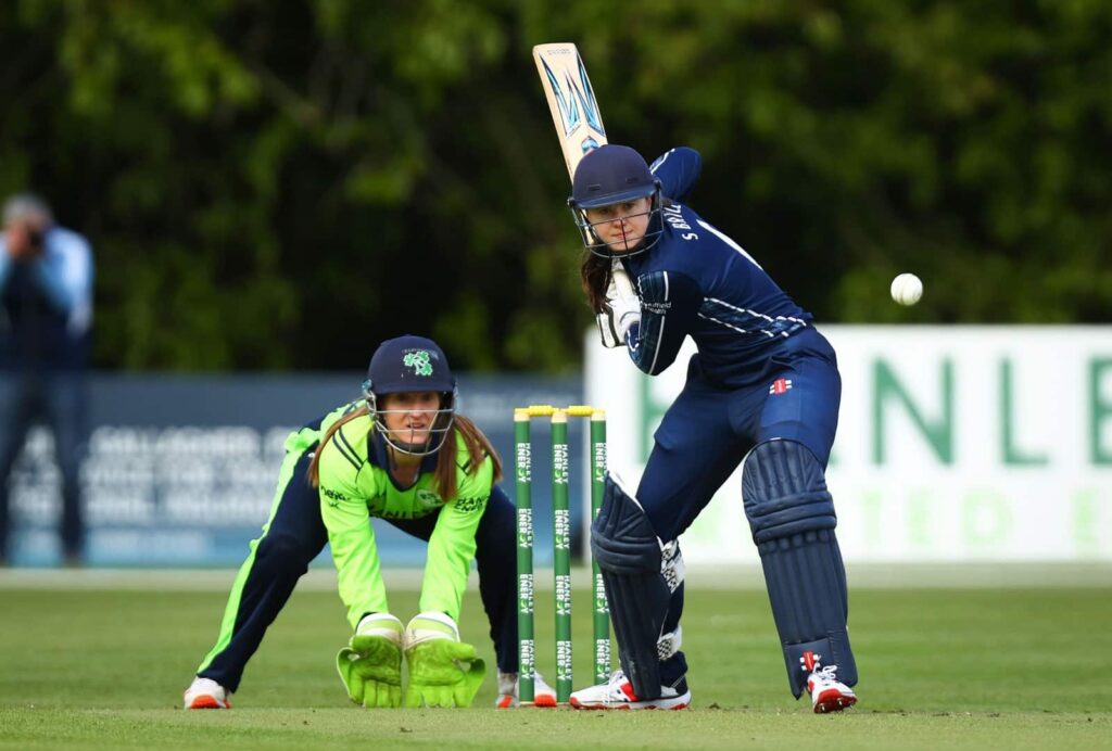 After Scotland won the toss and chose to bat first, Ireland went into the match with two debutants – Amy Hunter and Ava Canning. And it was Canning who made the initial breakthrough with an in-swinger that deceived Becky Glen and bowled the Scottish opener in the second over.