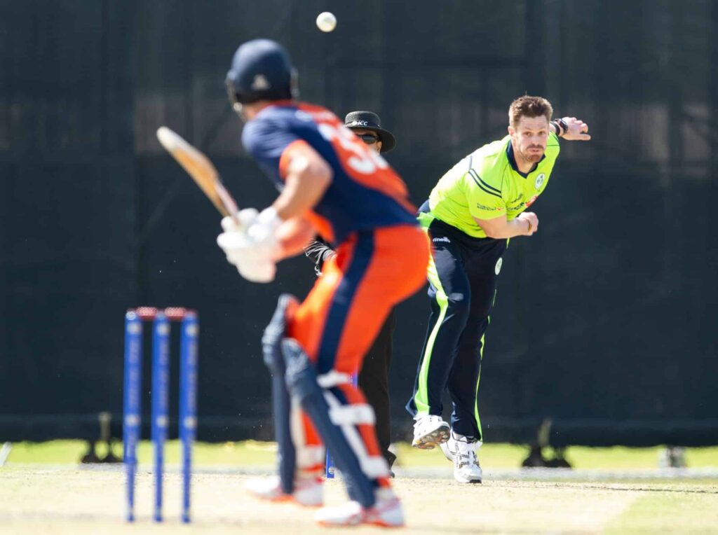 Once more the Irish bowlers struggled to contain their opponents during the powerplay, and Netherlands raced to 79-0 after the six overs. The Dutch openers, Tobias Visee (78 from 36 balls) and Max O’Dowd (38 from 34 balls) hit a 116-run opening stand in 9.2 overs and looked set to launch their side to a score well beyond 200.