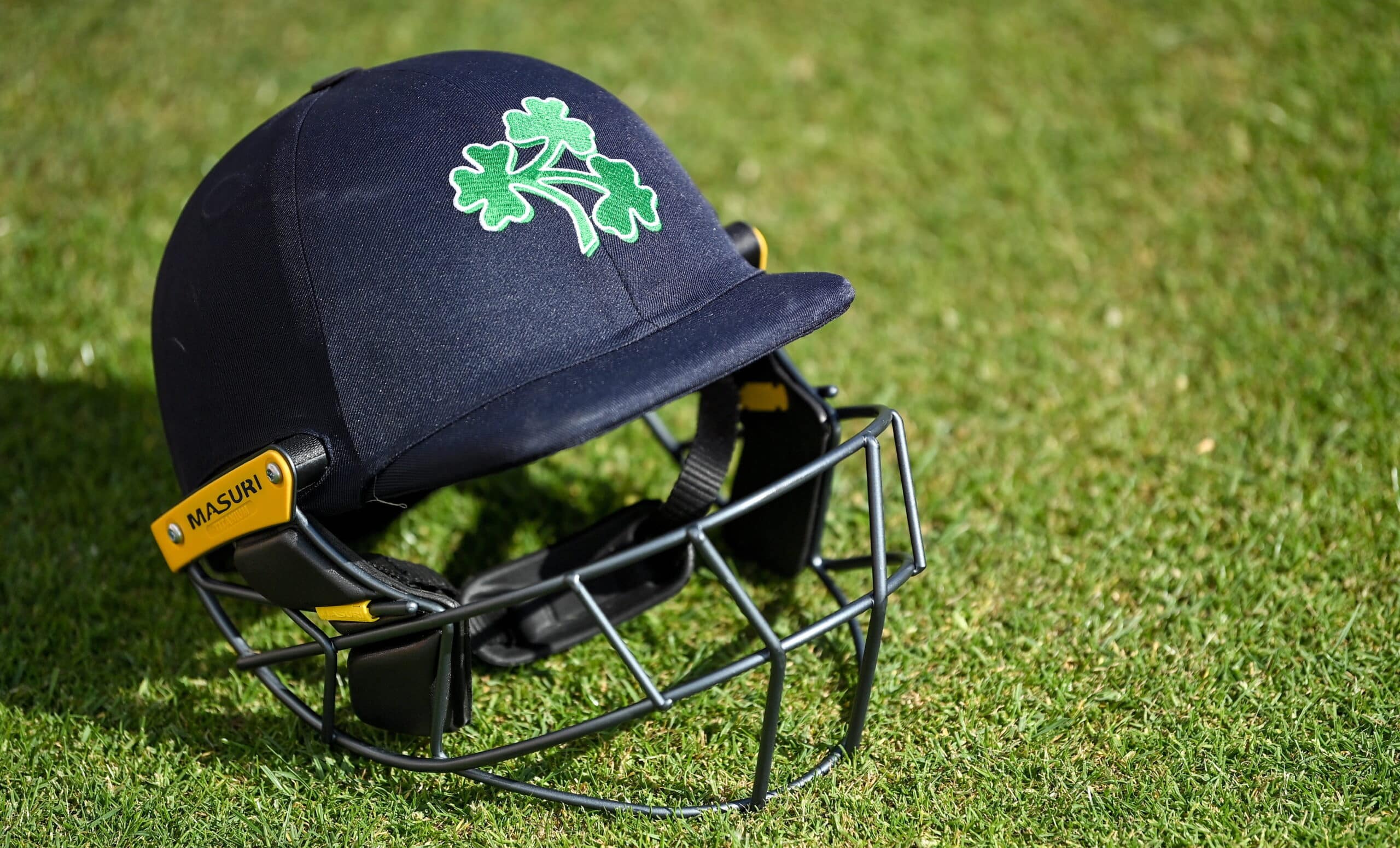15 July 2022; A batsman's helmet before the Men's One Day International match between Ireland and New Zealand at Malahide Cricket Club in Dublin. Photo by Seb Daly/Sportsfile