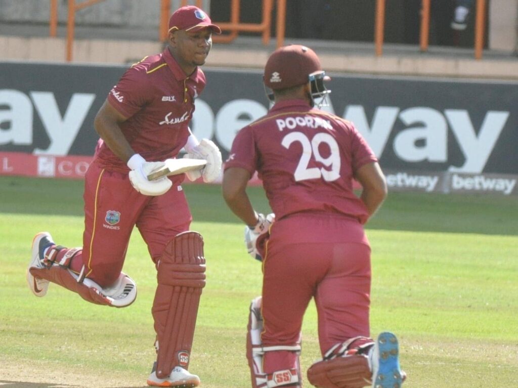 Evin Lewis and Nicholas Pooran running between wickets