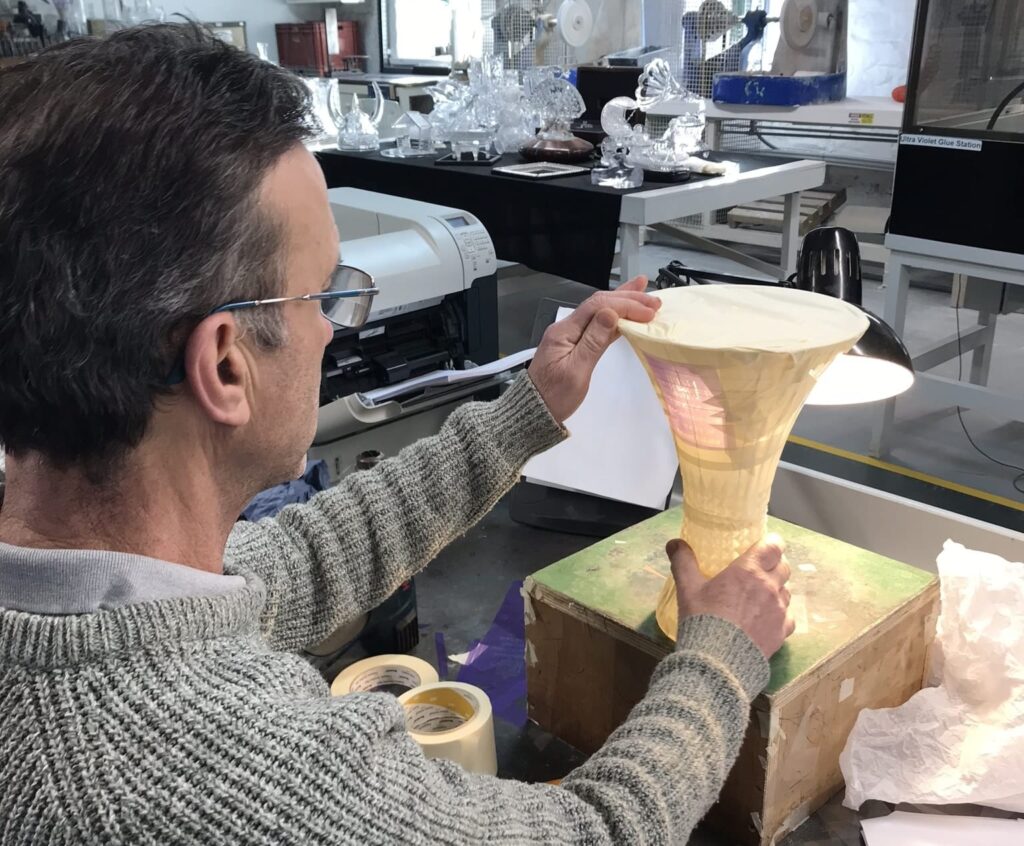 A crystal maker fashions the Irish Cricket Awards
